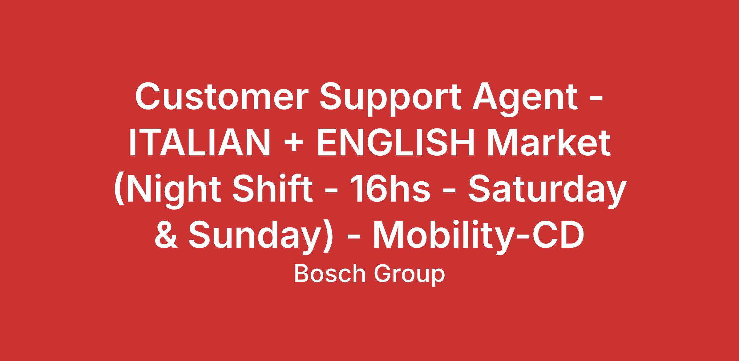 We are offering a weekend-based shift, operating mainly in the Italian market, in which you could be supporting calls in English or Spanish as well.