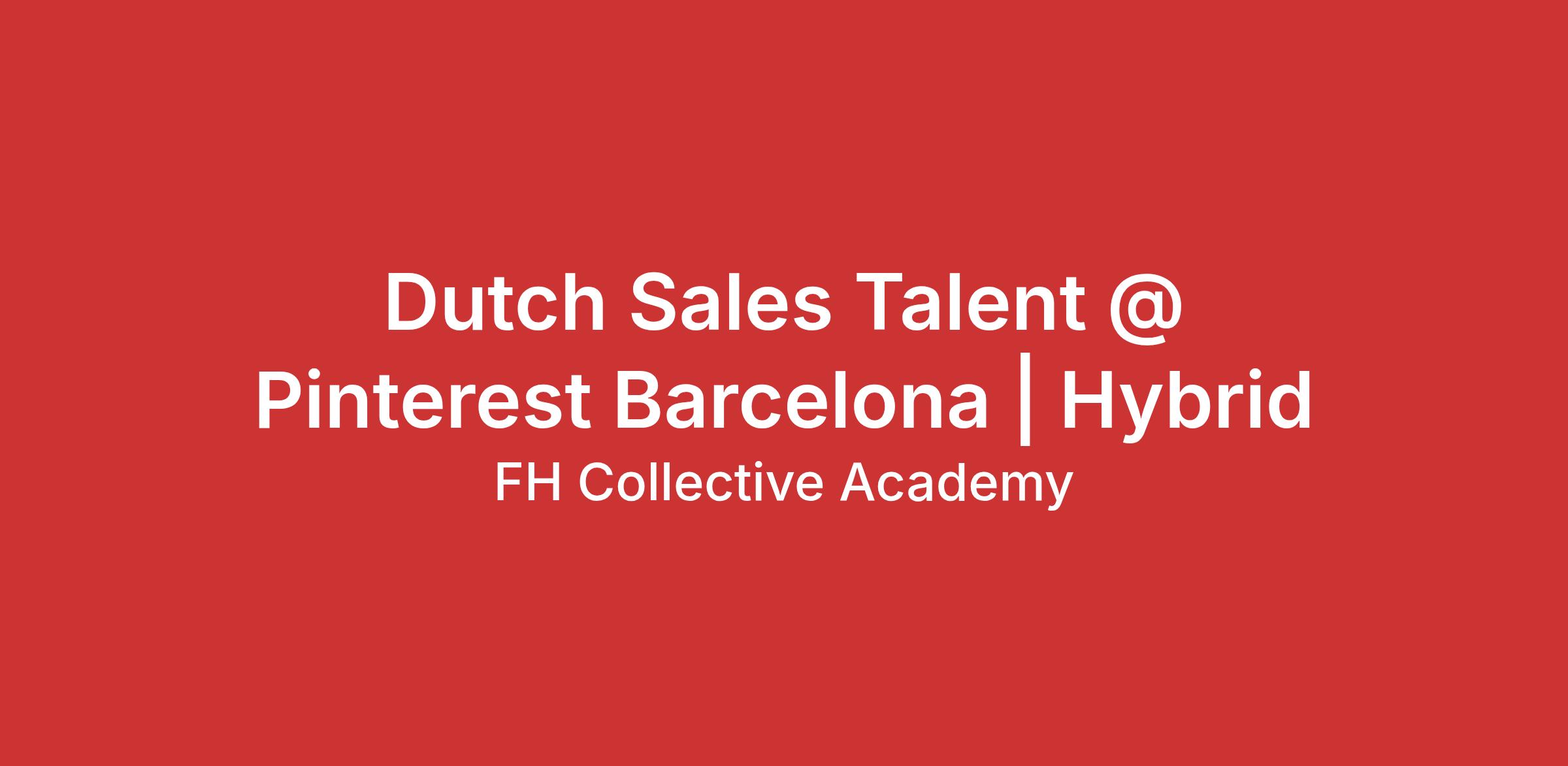 Forget the typical corporate sales roles. We are looking for a Dutch-speaking Sales Development Representative (SDR) who doesn't just "make calls" but starts conversations that matter. Join the Pinterest project in Barcelona and help Dutch businesses turn their creative ideas into high-performing ad campaigns.