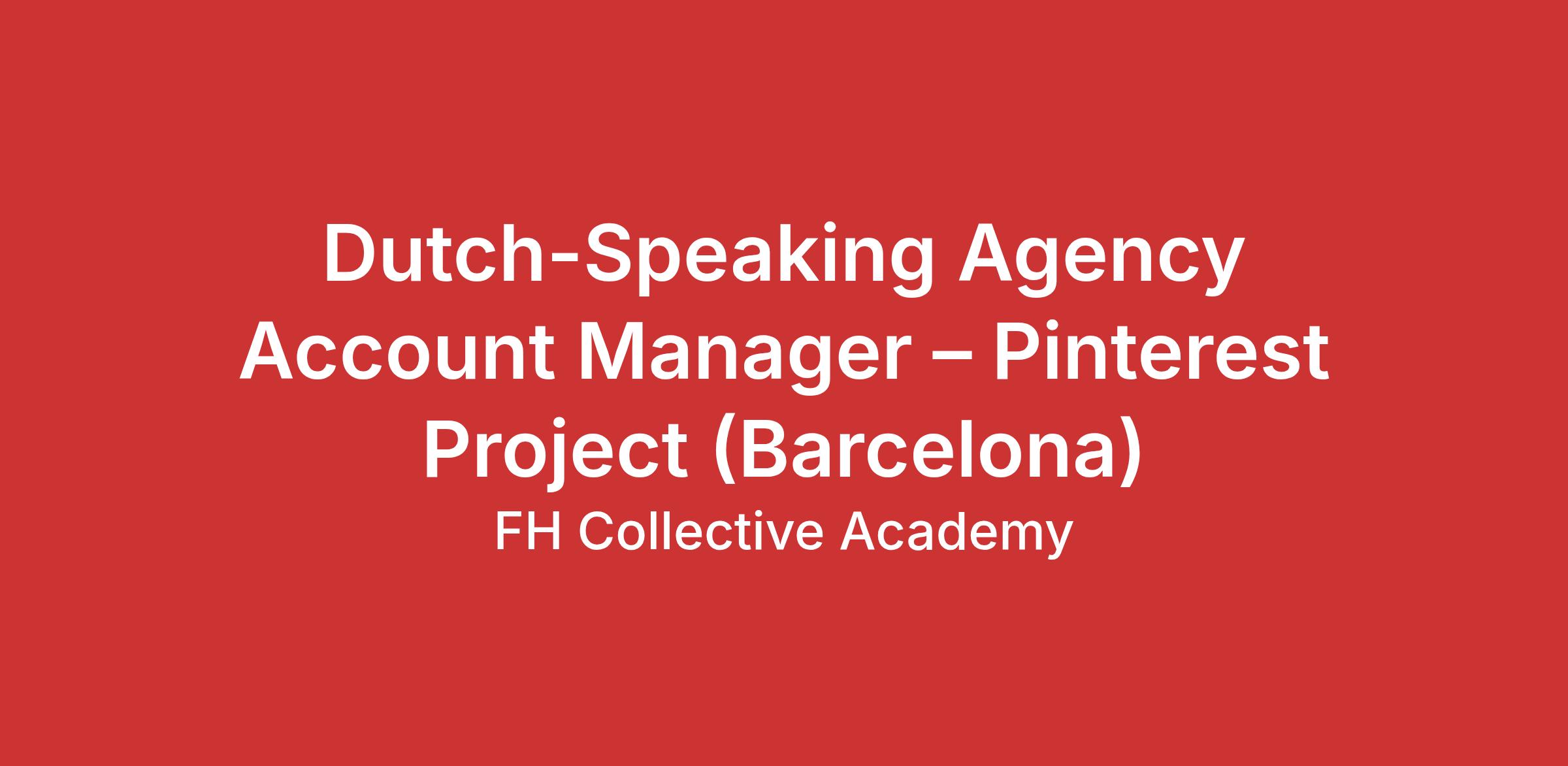 Are you an expert at building long-term partnerships and driving digital strategy? We are looking for a Dutch-speaking Account Manager to join the Pinterest project in Barcelona. In this role, you will be the primary point of contact for top-tier media and creative agencies, helping them master visual discovery and scale their clients' success.