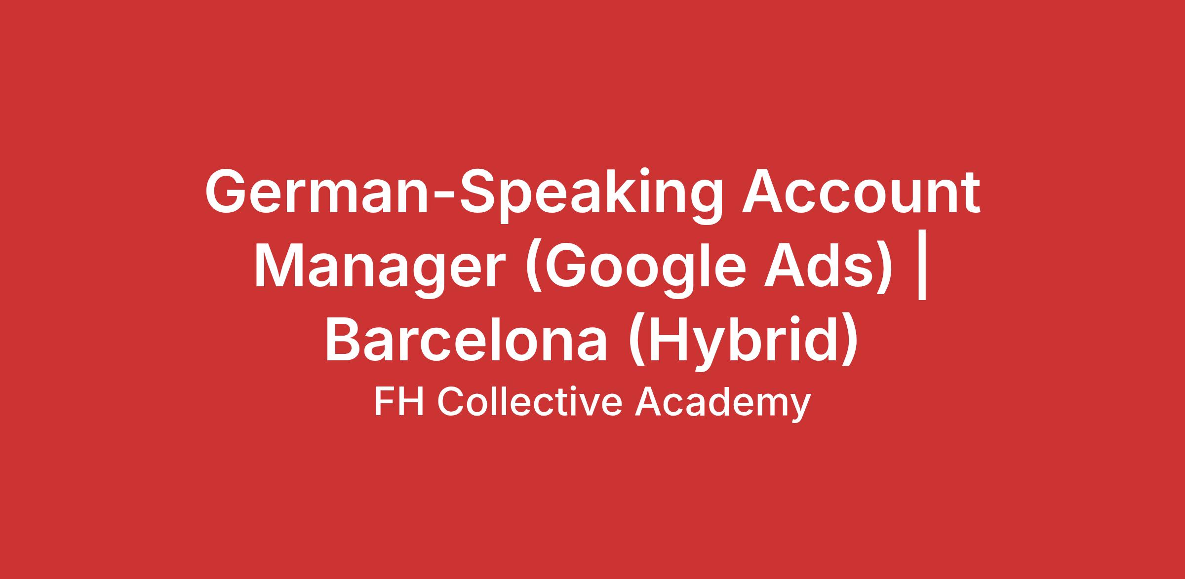 We are looking for a German-speaking Account Manager to join a high-impact Google Ads project in Barcelona. If you enjoy working with clients, driving growth, and using data to create real business impact — this role is for you.