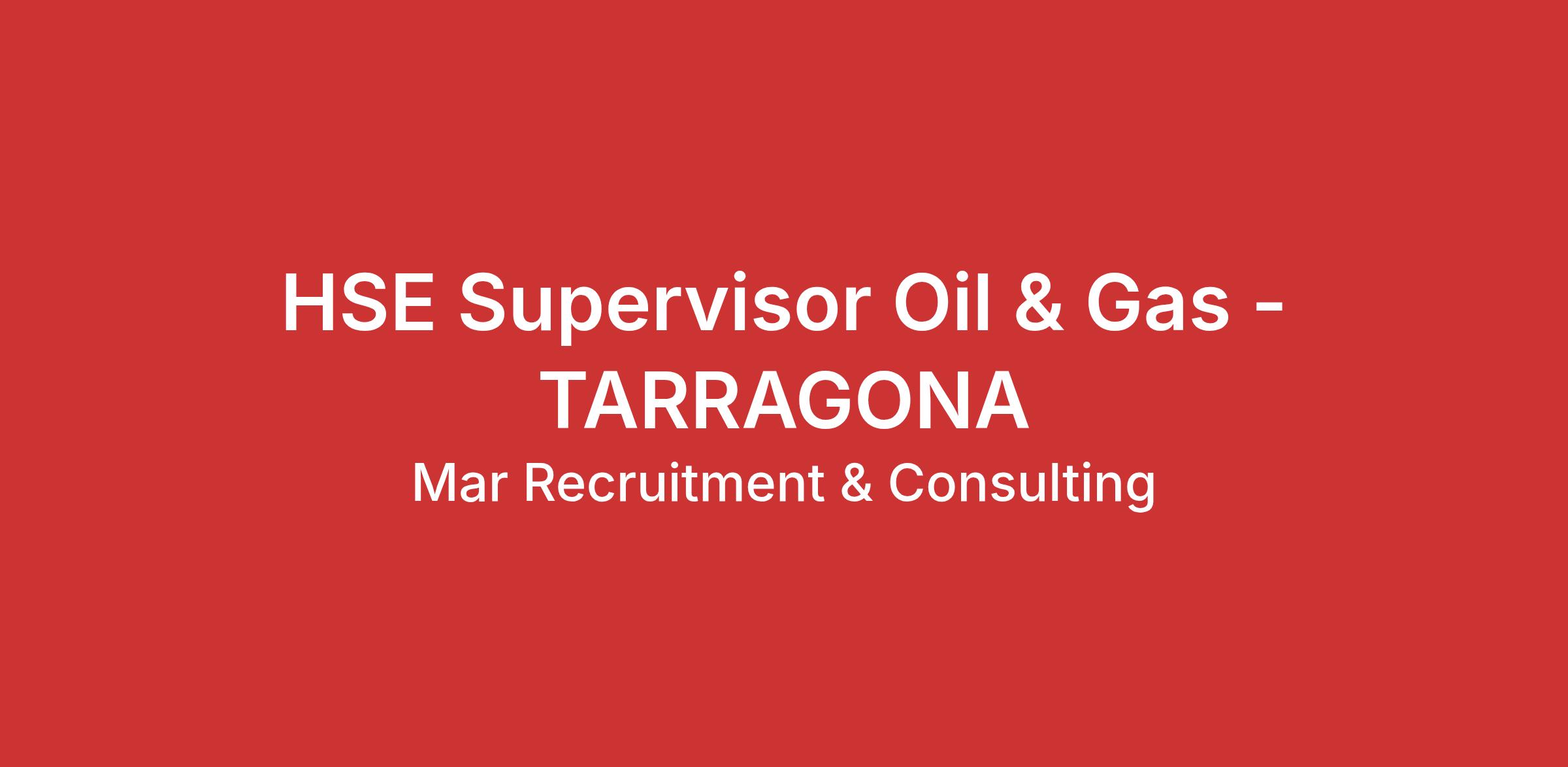 At <\/span>Mar Recruitment<\/b><\/span>, a consultancy specialized in maritime, offshore, and energy sectors, we are currently looking for a <\/span>HSE Supervisor<\/b><\/span> <\/span>to join a major <\/span>Oil & Gas project in Tarragona<\/b><\/span>. Role Description<\/b><\/span> The HSE Supervisor ensures that all shorebase, quayside, transport, and warehouse operations are conducted in full compliance with Client HSE standards, Spanish regulations, and international offshore best practices. Key Responsibilities<\/b><\/span>