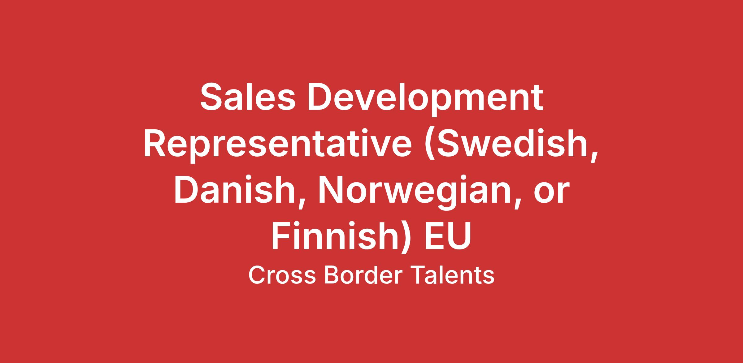 We are looking for ambitious and energetic Sales Development Representatives (SDRs) fluent in one or more Nordic languages (Swedish, Danish, Norwegian, or Finnish) to join our growing team in Barcelona.